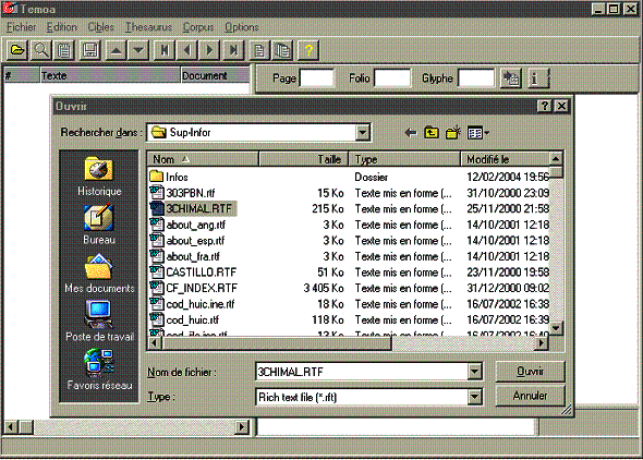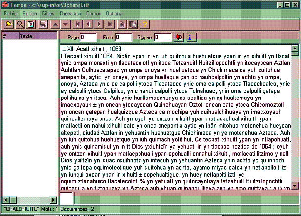 Le texte s'affiche alors dans la partie droite de la fenêtre de TEMOA |