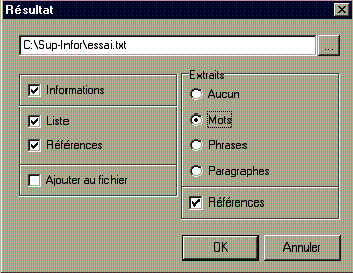 donner le nom du fichier où seront enregistrés les résultats puis de choisir