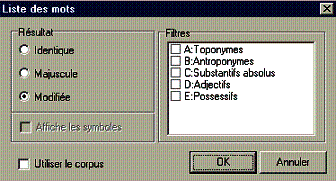 6 Pour voir les mots dans leur contexte il suffit de se placer sur un mot dans la liste : |