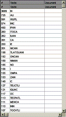 Si se hace clic en el signo # que se situa en la parte superior de la columna de la izquierda, se obtiene la misma lista clasificada por frecuencia. |
